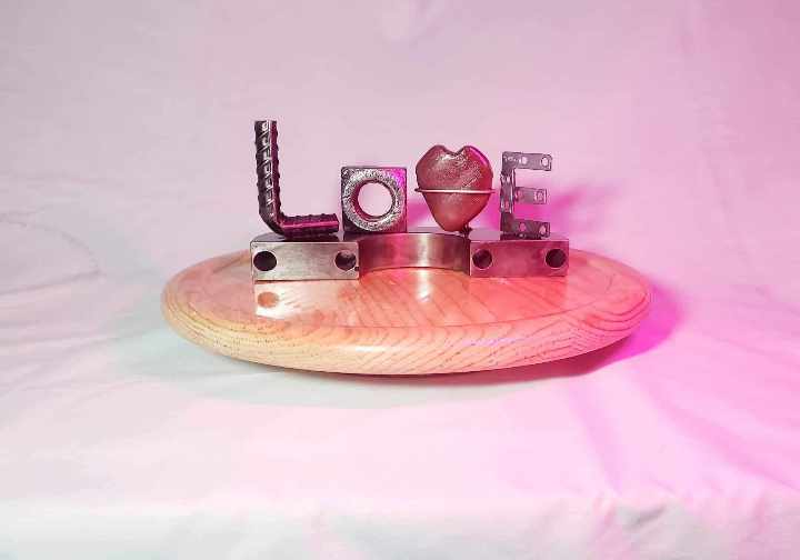 "Love" is a captivating masterpiece that brings the essence of love to life. Crafted from intricate metal pieces, this unique piece symbolizes how diverse human qualities come together to form the powerful, unbreakable bond of love. A stunning tribute to connection, it beautifully merges art and emotion, making it a perfect statement for any space.
