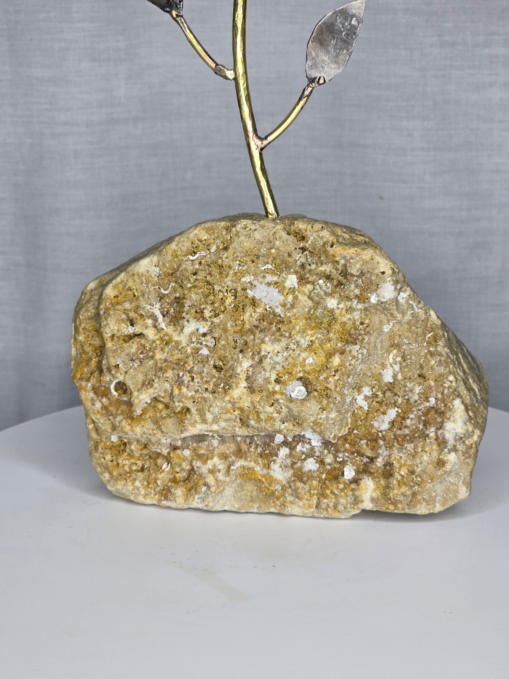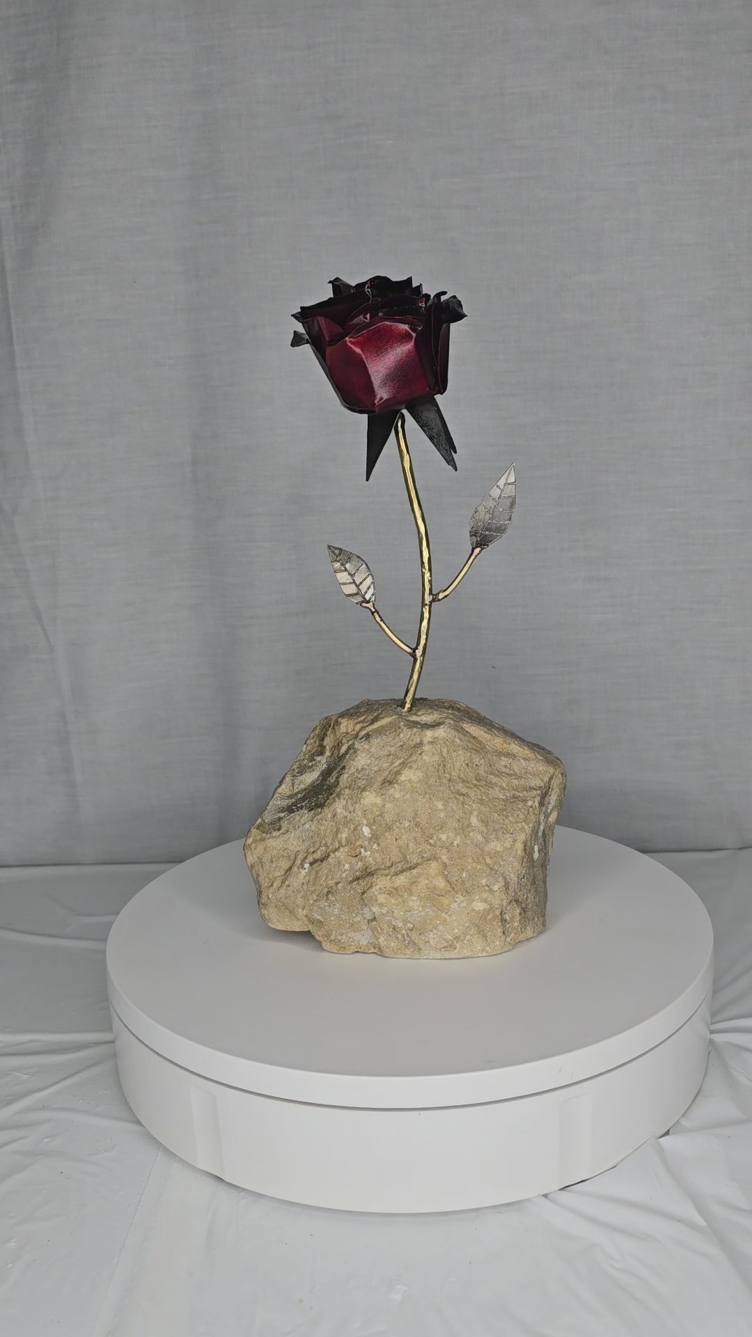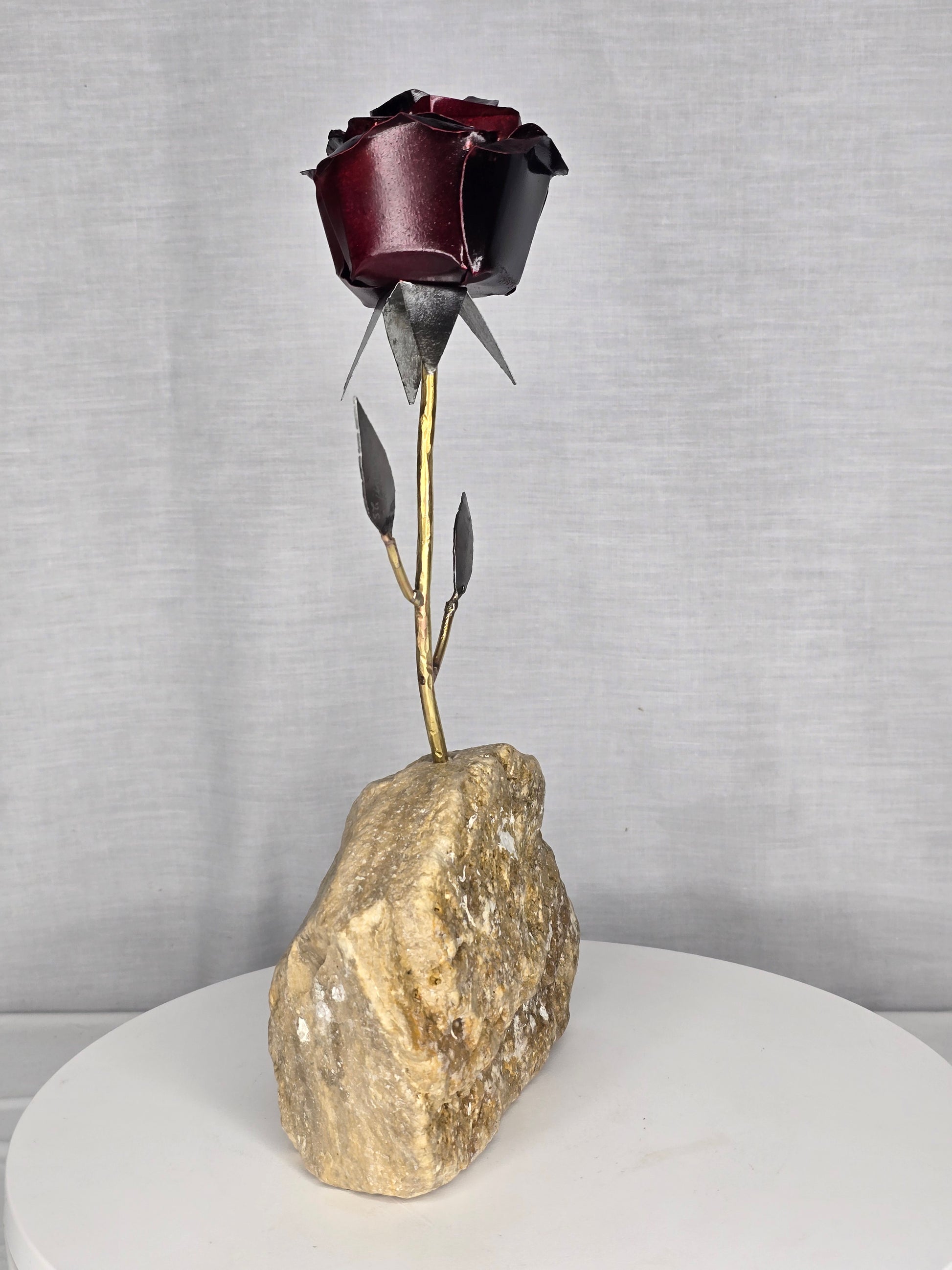 Forged from brass, sheet metal, and galvanized sheet metal, each piece carefully soldered, this rose blooms from stone as a symbol of resilience and beauty rising from hardship. Life may place us in rough and unyielding moments, but even there, growth takes root and flourishes. ![]()