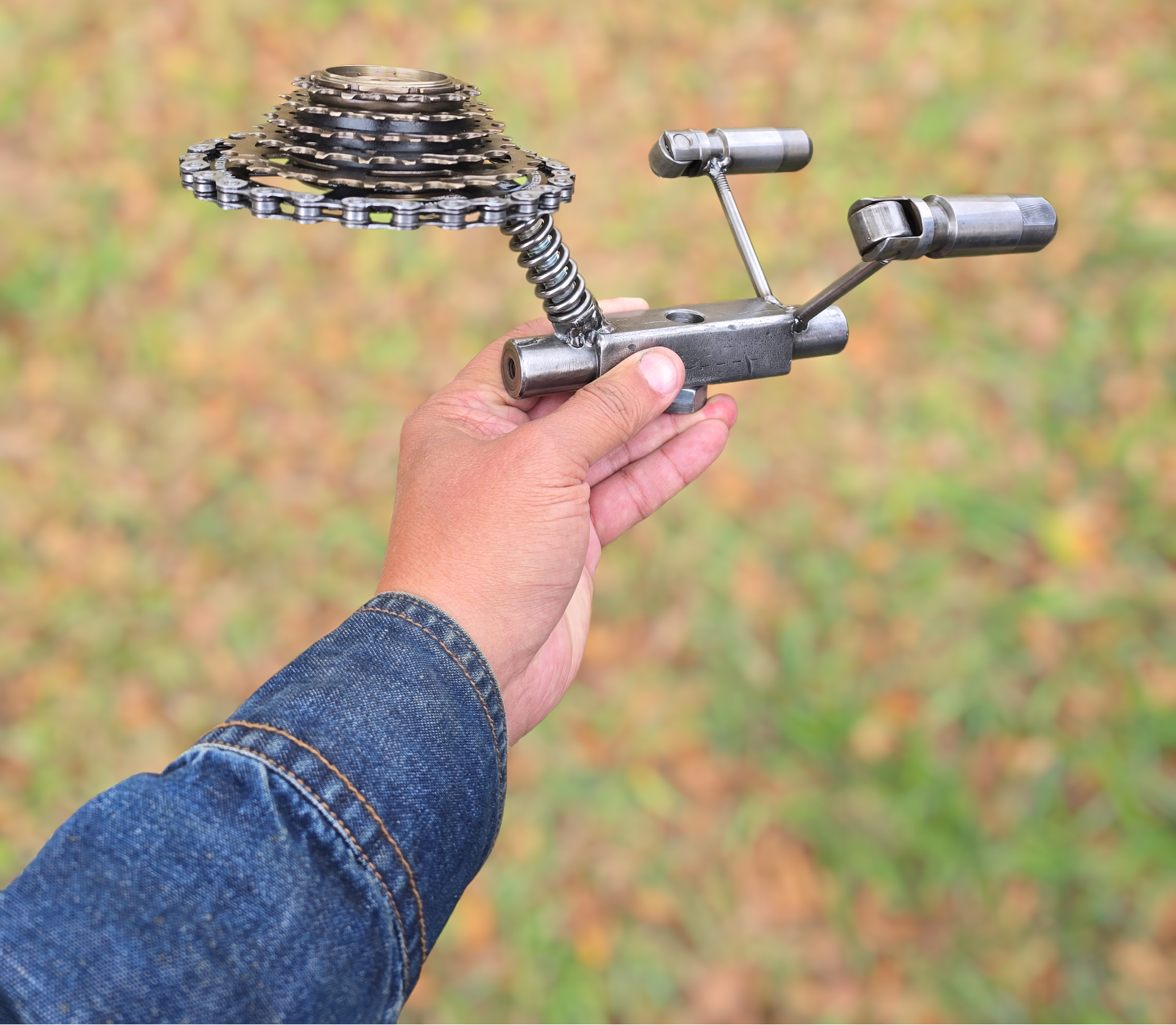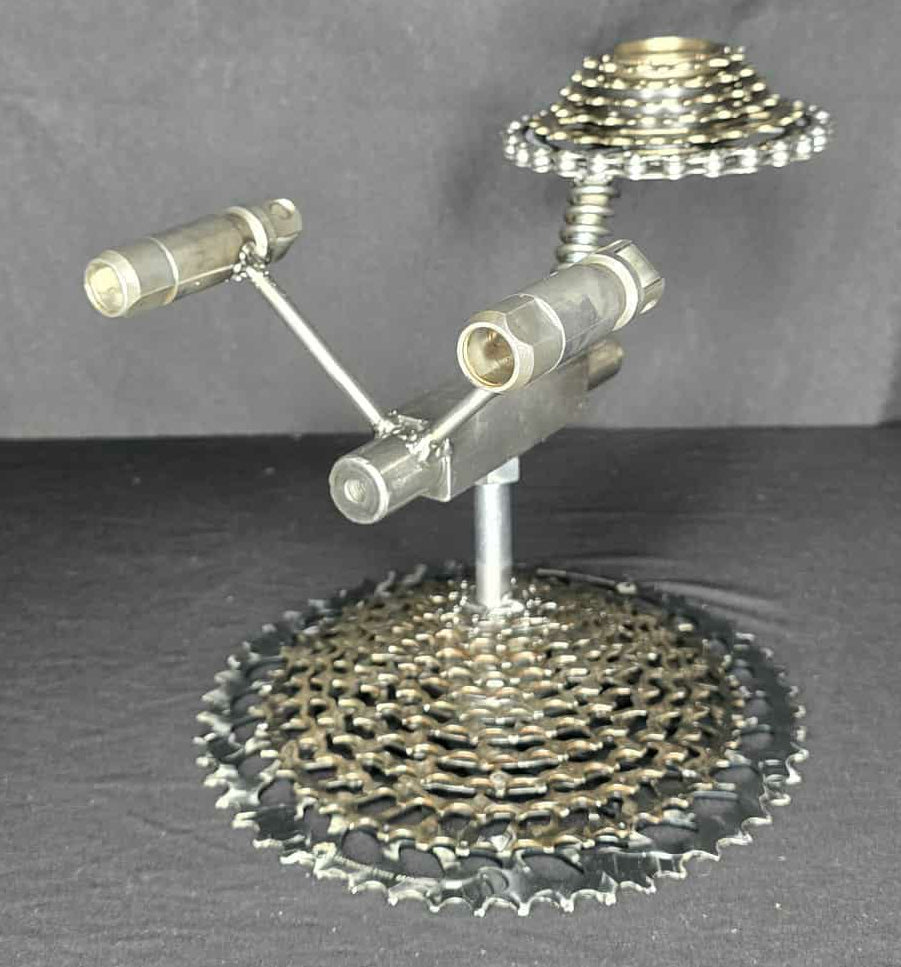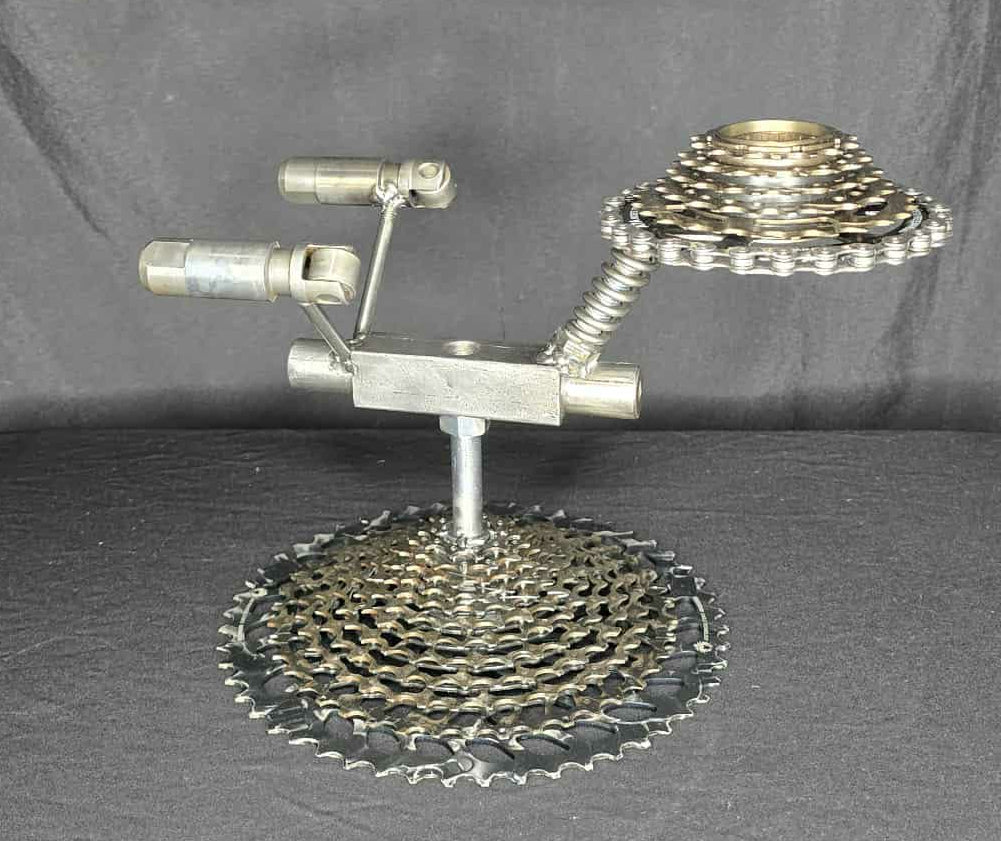 Forged from reclaimed steel and imagination, this piece feels like it just broke free from a Starfleet hangar. A burst of cosmic energy, a dash of warp-speed motion, and a reminder that even scrap metal can travel galaxies when given new life. 🚀✨