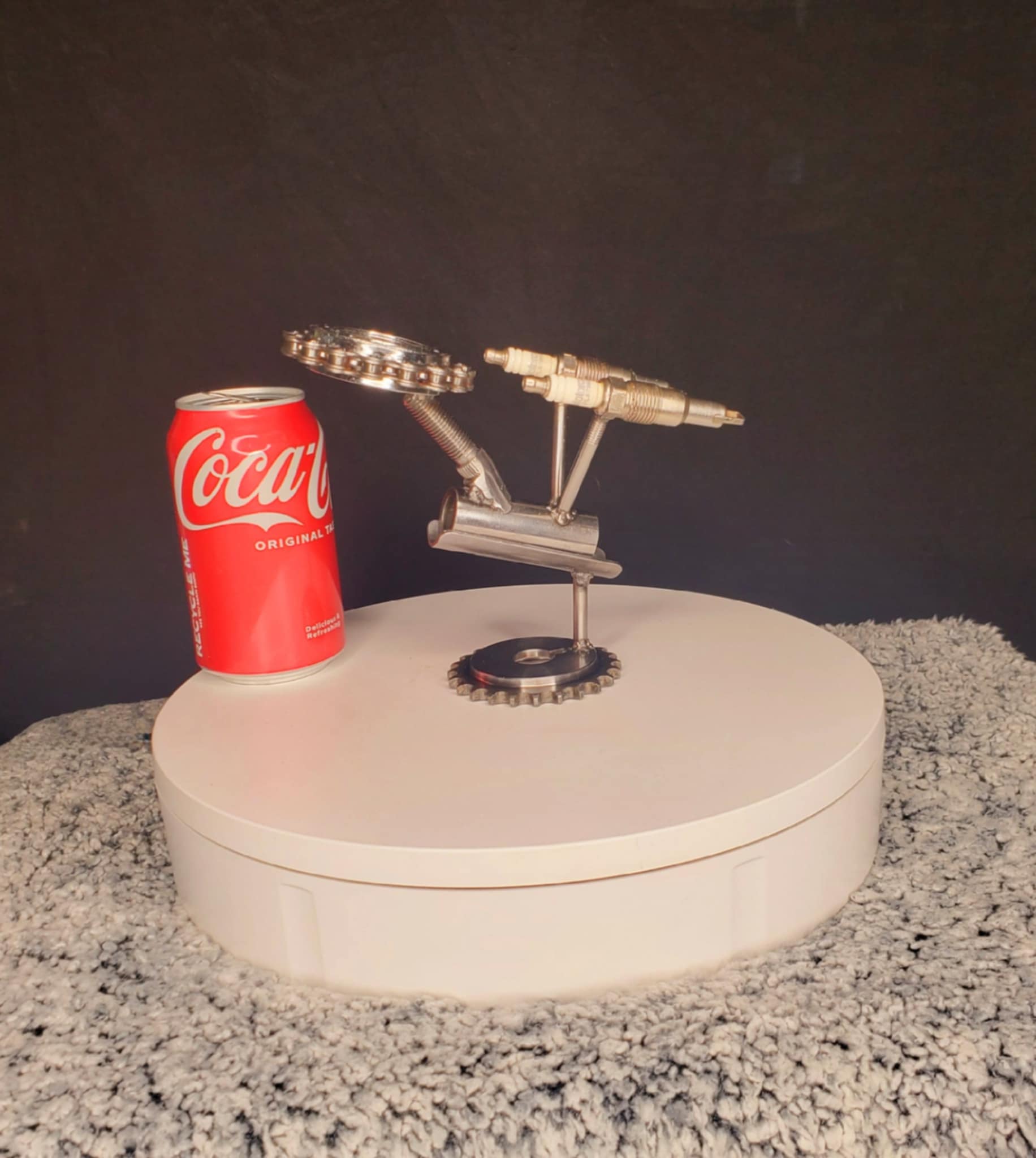 Where No Man Has Gone Before – This handcrafted USS Enterprise is more than art. It lifts off its cradle for play as a functional fidget spinner. Built from real metal parts, it's perfect for Trekkies, collectors, or desk warriors needing a stress-relieving escape. Boldly spin where others won’t!